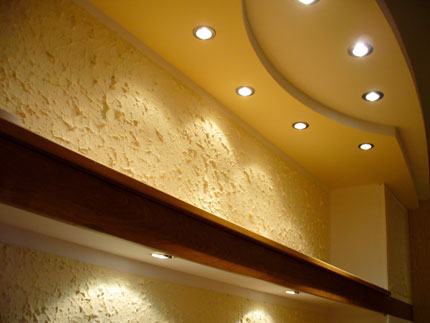 Декоративная авторская штукатурка, изящная форма и свет — достойная основа вертикальной консоли