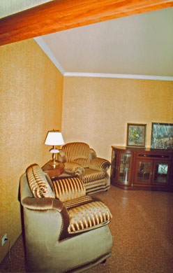 Идеально ровные стены, колерованный потолок, супертяжелый винил с натуральной нитью — основа для респектабельного интерьера
