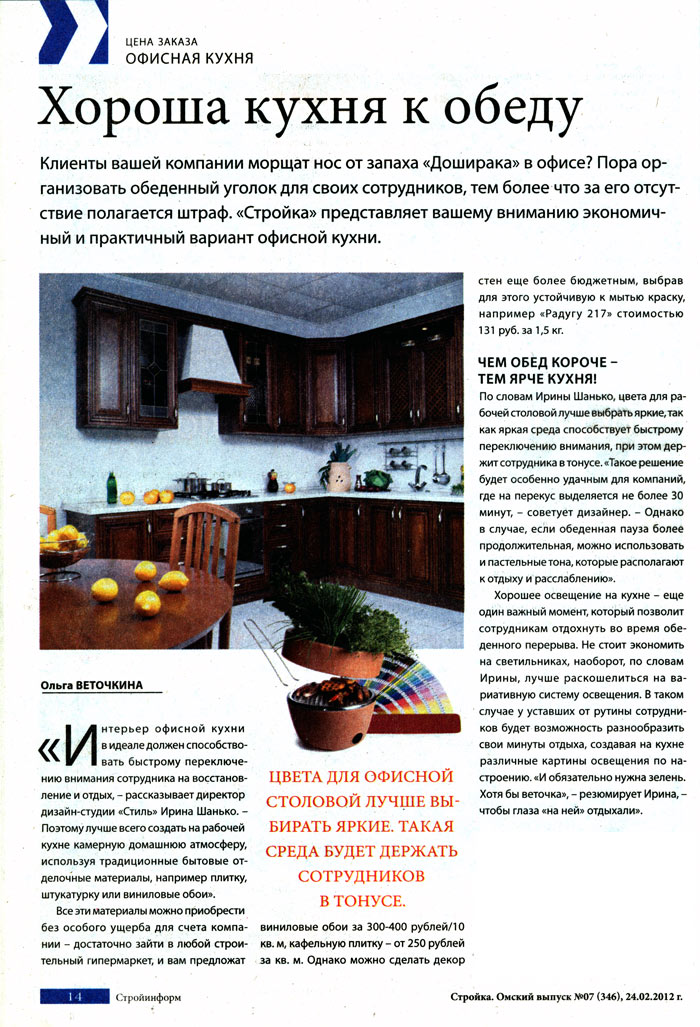 Мнение ведущего дизайнера студии «Стиль» Ирины Шанько о журнале «БК-Риэлт»